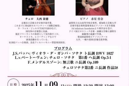 11月のコンサートのお知らせです。 チェロとピアノで愉しむドイツ音楽💖 バッハ、ベートーベン、ブラーム...